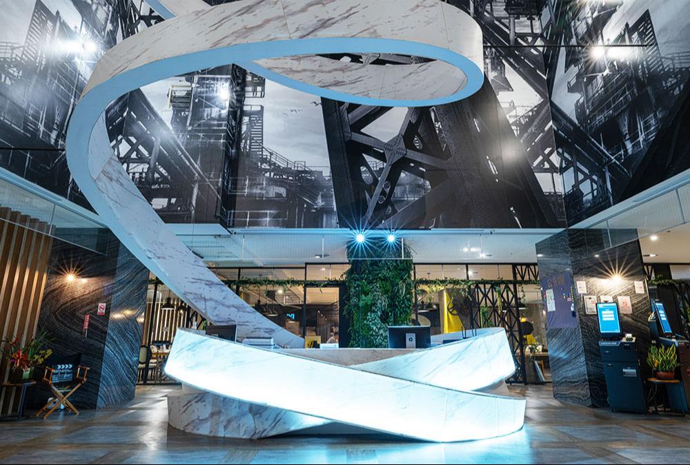 我們整體採用電影院風格設計,搭配房內寬敞明亮的空間,讓旅人感受當時懷舊的電影院情懷,又能好好放鬆。如果想規劃一趟城市度假輕旅行,來凝萃文旅就對了;而且出行方便,想要品嚐周遭台中美食完全不成問題。