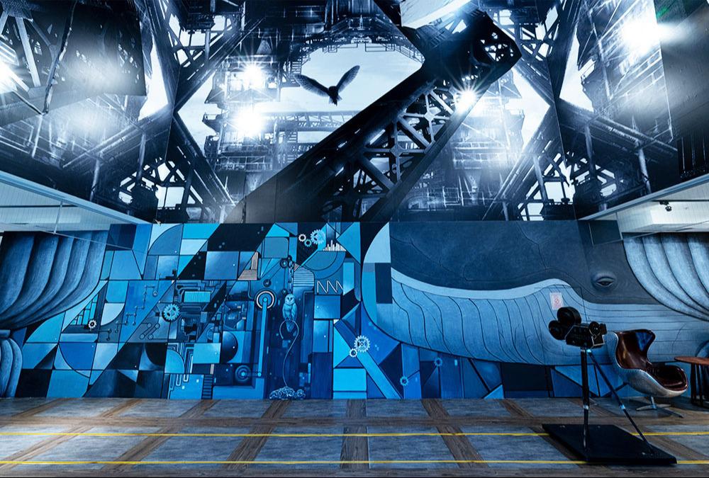 凝萃文旅裡有超棒超大的拍照空間。櫃檯正前方有一面打卡牆,等候的時間拍拍照剛剛好。